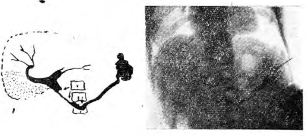 С., 53 лет, поступил 9/111-60 г. 5 лет назад больному произведена резекция желудка по поводу рака. Больной иктеричен; печень выступает из подреберья на ладонь, плотная, бугристая. Диагноз — состояние после резекции желудка по поводу рака, метастатическое поражение печени.
