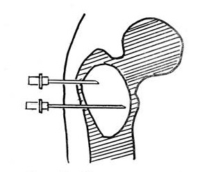 Нами предложено инъекционное пломбирование костных кистозных полостей костно-желатиновой смесью, которую мы назвали костным микстом. Нашей целью при лечении патологических полостей являлось восстановление структуры костной ткани путем стимуляции репаративного процесса. Для ее достижения мы пользовались костно-желатиновой смесью, в которой эмульгантом служит костная мука из кортикальной стенки свежих трупных костей, консервированных и стерилизованных в растворе РДК (раствор Рингера—Локка с добавлением димедрола и катамина) в течение не менее суток, а эмульгатором — стерильный желатин (10%) в соотношении 5 : 2 или 5:3. После прокола стенки костной полости через мягкие ткани двумя или тремя широкими костными иглами и предварительного промывания полости физиологическим раствором (рис. 1) вводили костный микст до ее полного заполнения. Иглы удаляли, а оставшиеся в кортикальных стенках отверстия заклинивали заостренными пробками из ксенотрансплантатов для предотвращения вытекания введенной смеси (рис. 2). Применение предлагаемого средства и способ его введения обеспечивают доставку остеопластического материала в зону патологического очага с образованием депо из органических и неорганических солей кальция и фосфора без широкого хирургического вскрытия. Являясь гипертонической средой, костный микст за счет повышения осмотического давления вызывает усиленный приток тканевой жидкости, что вместе с остеопластическим материалом стимулирует репаративный остеогенез. Желатина является не только эмульгатором, но и гемостатическим средством, уменьшающим процесс вымывания кровью солей кальция и фосфора.