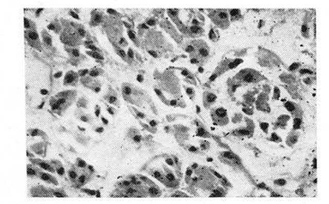 Наши исследования показывают, что процентное соотношение различных типов гландулоцитов в семенниках онкологических больных совершенно иное, чем у здоровых. Относительное количество активных средних клеток при раке резко снижено и во всех возрастных группах чаще всего соответствует тому количеству средних клеток, которое обнаруживается у здоровых людей лишь после 70 лет. Во всех наблюдениях было отмечено значительное увеличение числа инволюционирующих клеток, представляющих собой различные стадии гибели функционально активных гландулоцитов. Мы считаем, что быстрая гибель функционально активных интерстициальных клеток обусловлена не столько непосредственным воздействием на них продуктов обмена опухоли, сколько снижением гонадотропной функции гипофиза, нарушением механизма обратной связи в системе передняя доля гипофиза — гонады и расстройством деятельности щитовидной и надпочечных желез.
