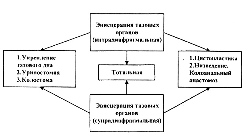 Рис. 2. Классификация вариантов эвисцерации тазовых органов.