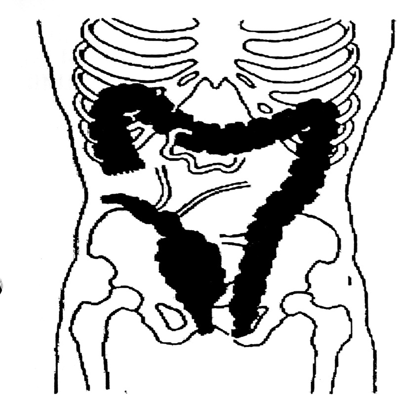 Рис. 4. Схема восстановления непрерывности кишечника и мочевыводящих путей. Цистопластика произведена илеоцекальным сегментом ободочной кишки.