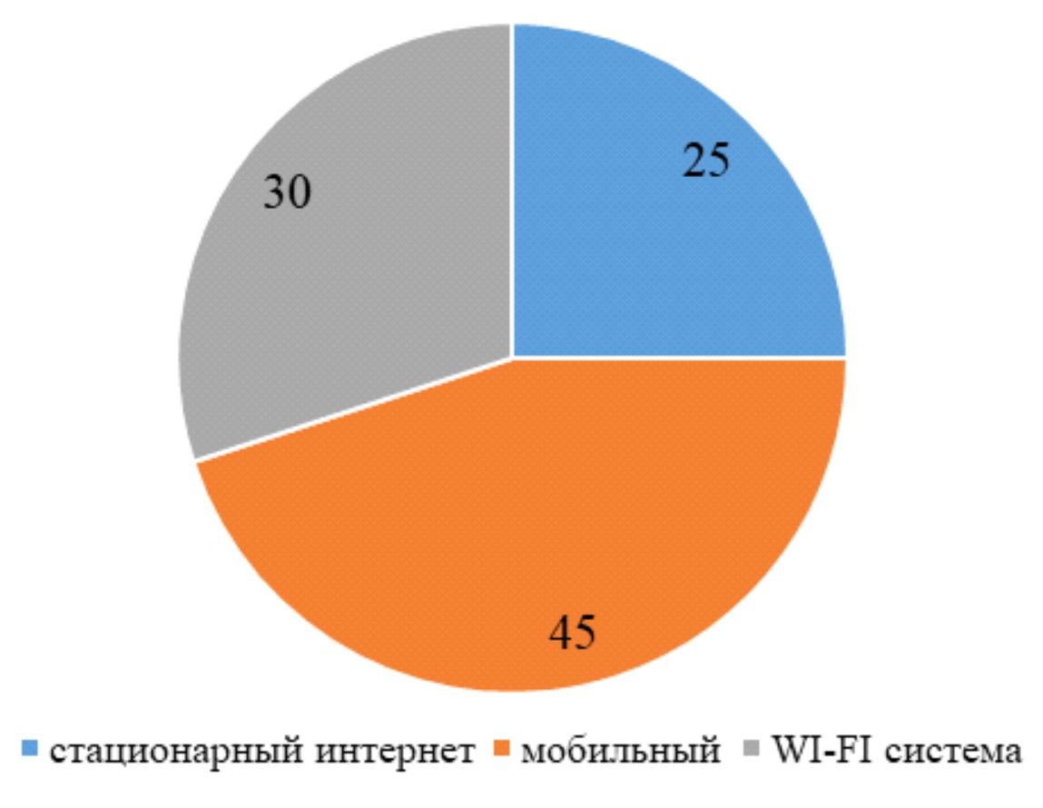 Диаграмма 1. Соотношение разных видов подключения к глобальной сети на 2015 год
