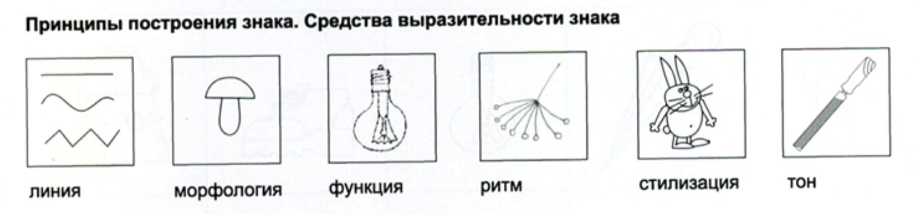 Здесь приведены следующие вариации знаков: натуралистичный; стилизованный; дизайн-форма; гротесковый; абстрагированный; метафорический; знак-метаморфоза (рис. 9).