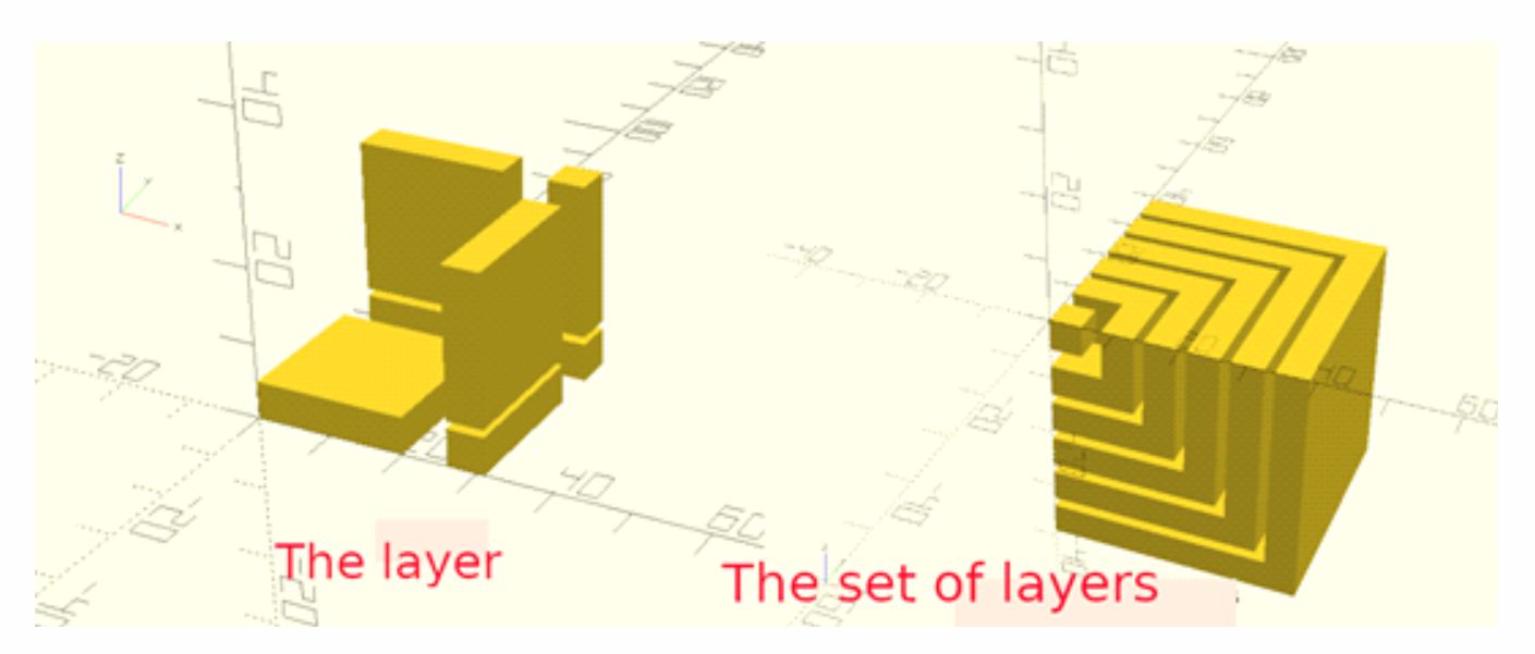 Here below a layer is defined as a set of points of a multidimensional spaces of real numbers Rn between successively following hypercubes with integer edges. The layer, like the whole n-dimensional figure, consists of elementary hypercubes 1n in whole number space denoted as Zn.