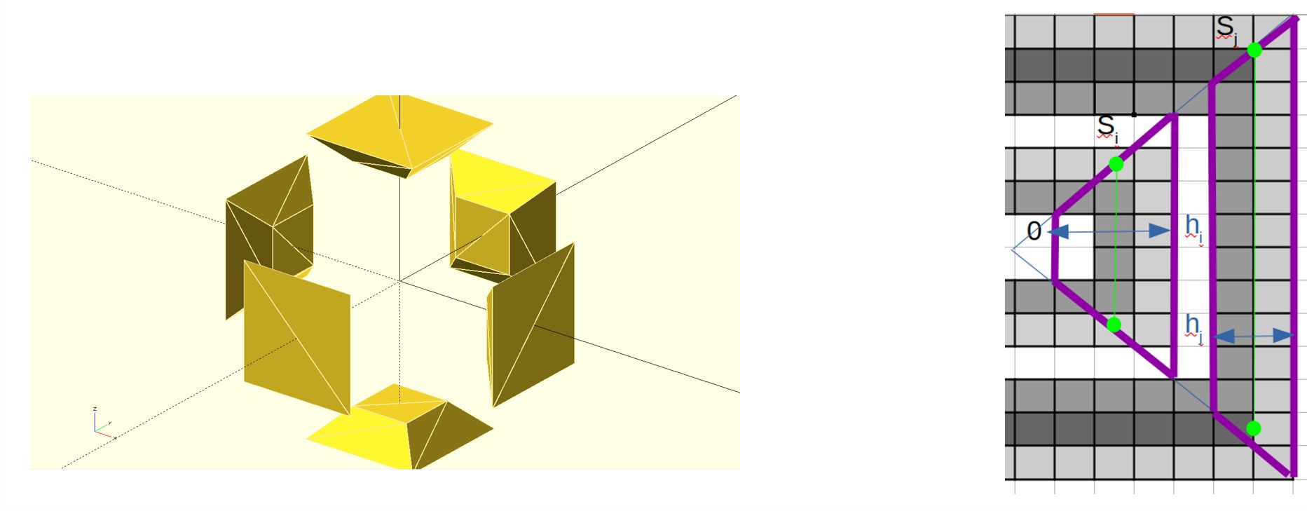 Picture 3. ∄ equivalence function F in Zn , n > 2 maintaining the fundamental properties of the Construction: central symmetry and continuous succession of layers except two-dimensional case (trapezoid)