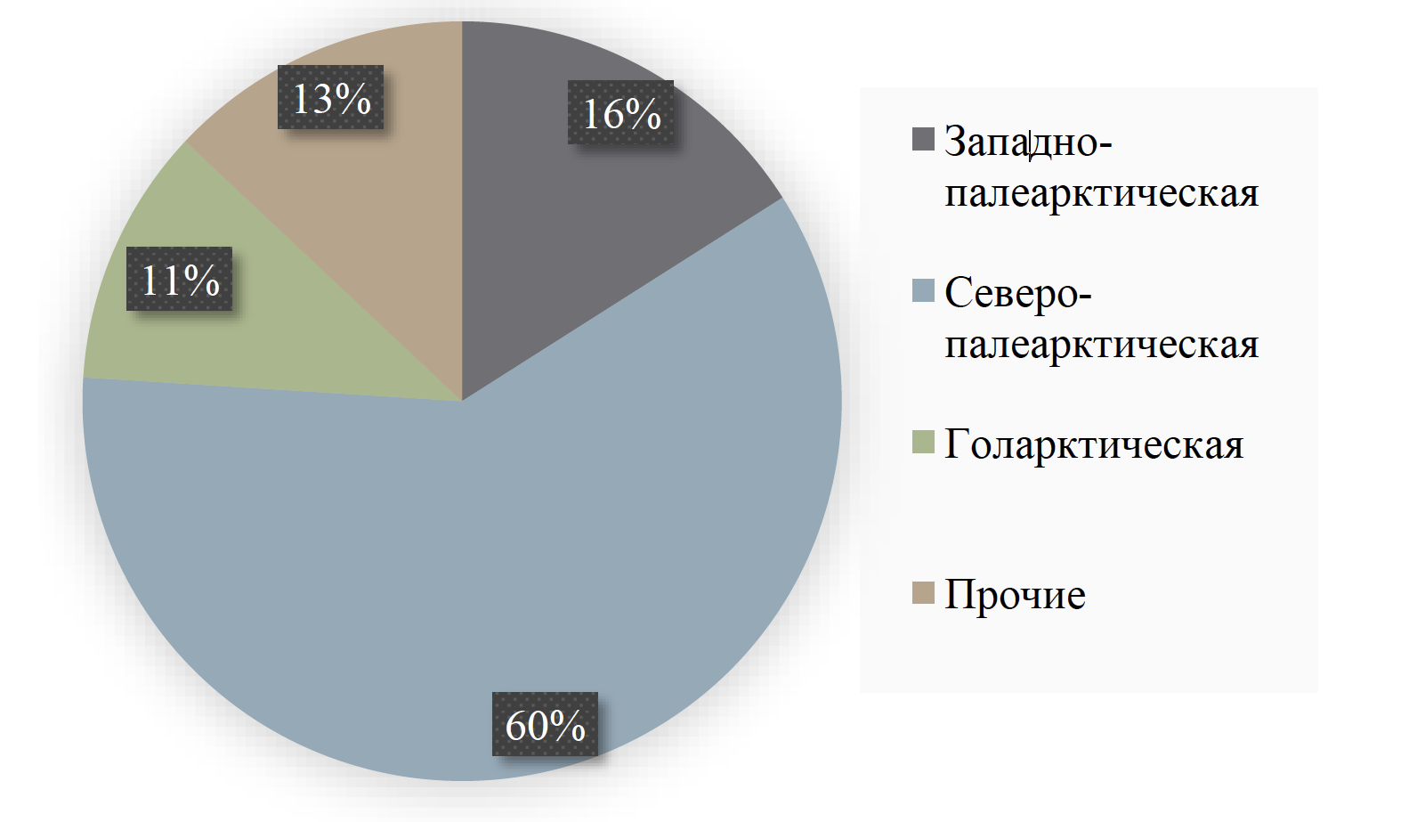 Большинство зарегистрированных видов имеют широкие ареалы – от западно- палеарктического до космополитического (рис. 2). Кроме того, были обнаружены узкоареальные виды, распространенные в Сибири – Bithynia starobogatovi (Lazutkina et Andreeva in Lazutkina, Andreeva et Andreev, 2014), Boreoelona contortrix (Lindholm, 1909), Valvata aliena Westerlund, 1877. Чужеродные виды не встречены.