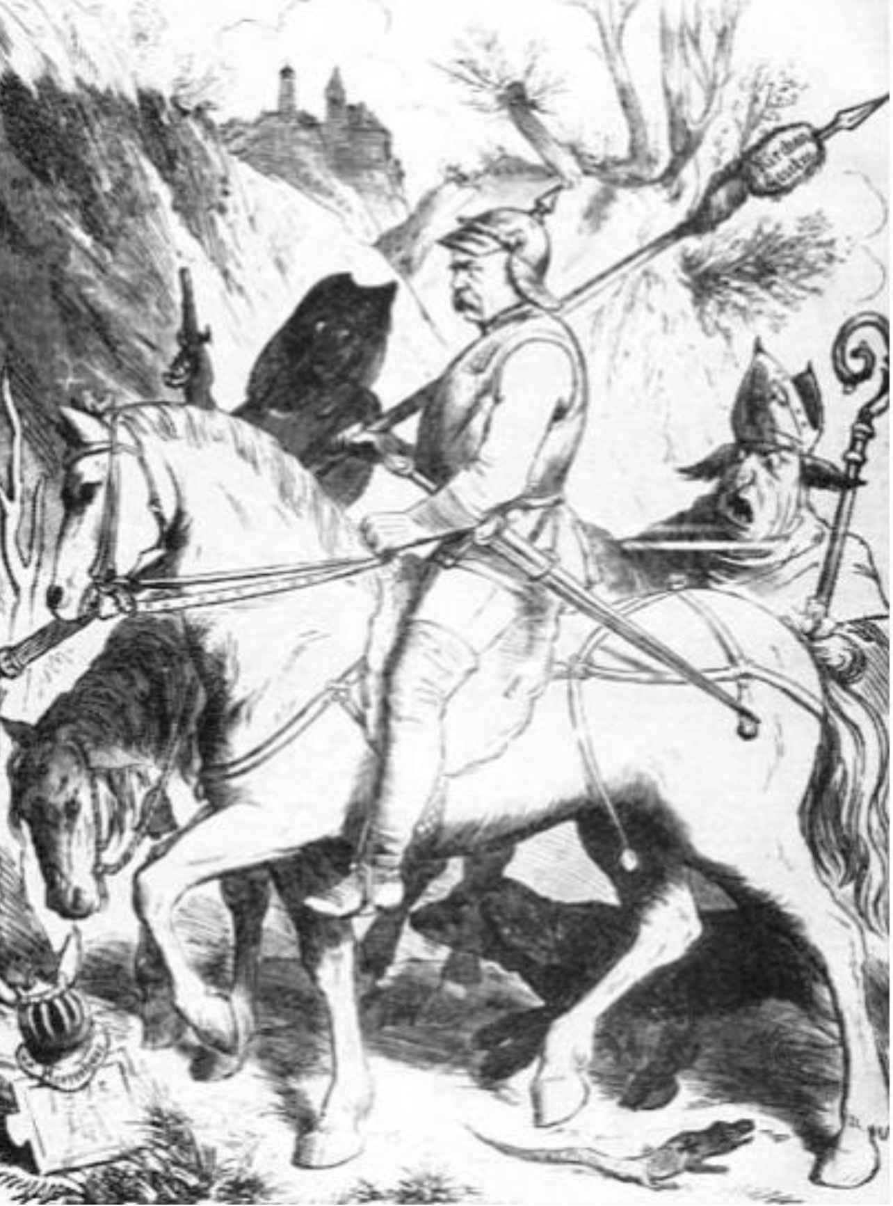 В том же 1875 г. художник Густав Хайл в сатирическом журнале «Берлинские осы» («Berliner Wespen») изобразил Бисмарка рыцарем, который идет на войну против католической церкви.