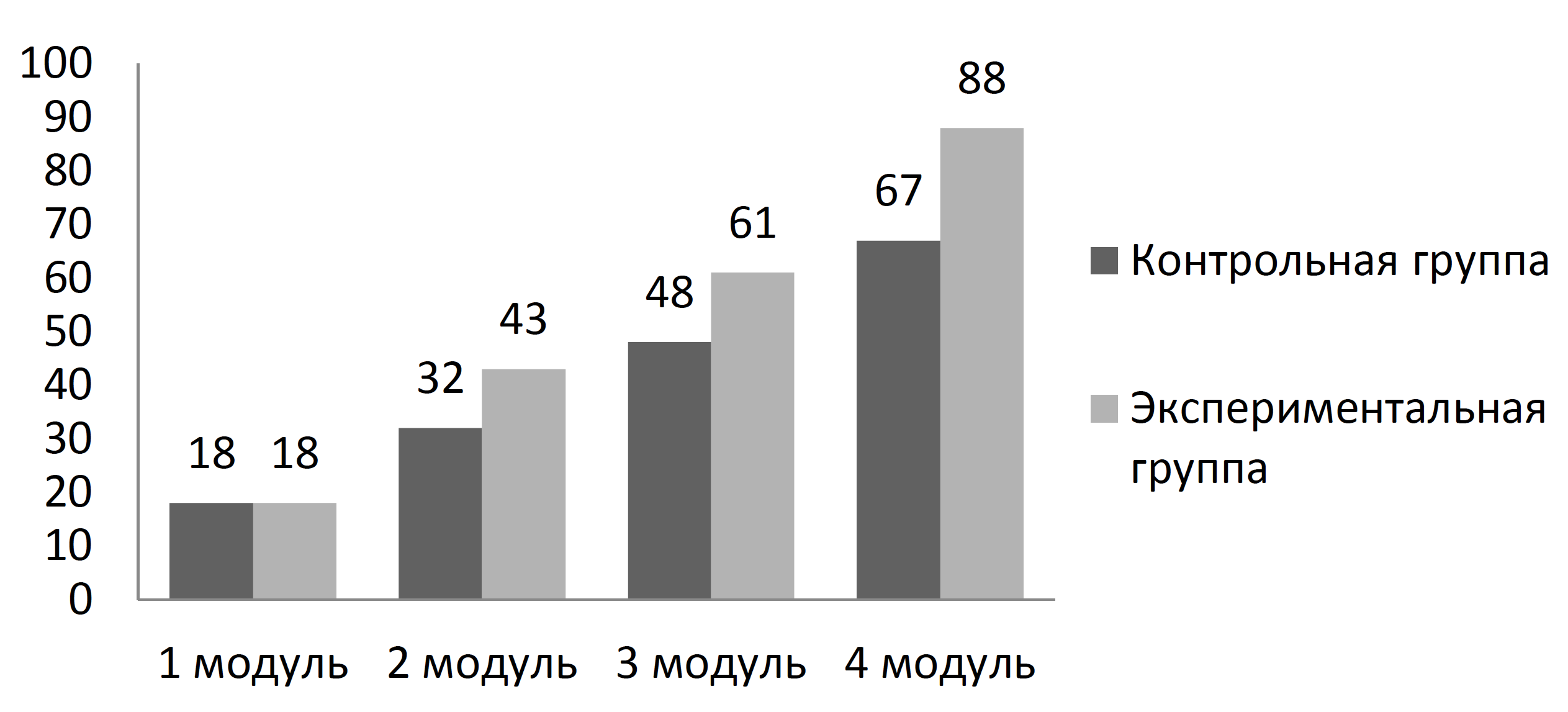 Экспериментальная | 25 | 20 | 100 | 88 | 0.88 | |