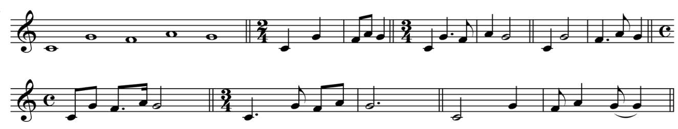 Например, интонирование мелодической линии в различном метроритмическом оформлении.