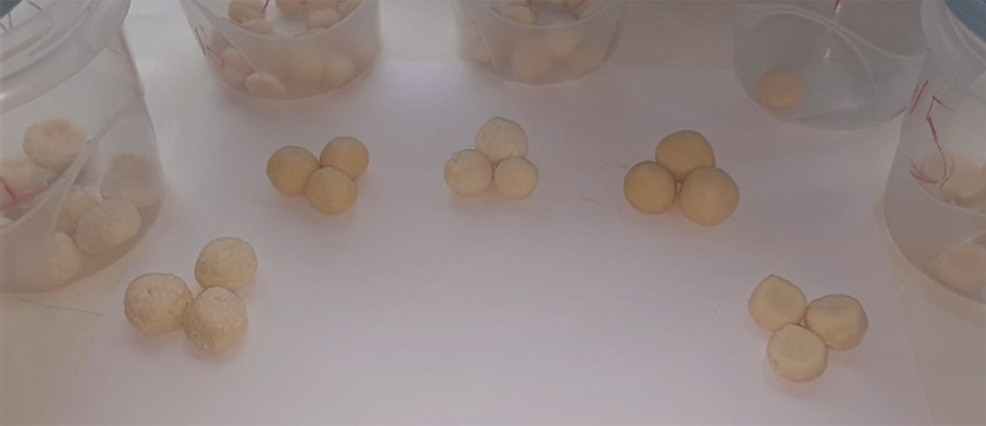 Результаты. Выработанные опытные образцы сравнивались с контрольным образцом по органолептическим и физико-химическим показателям. Органолептические показатели вариантов опыта: шаровидная форма, плотная консистенция и кисломолочный вкус. Данный вид сыра рисунок не имеет, что соответствует ГОСТу. На рисунке представлен внешний вид сухого сыра курт.