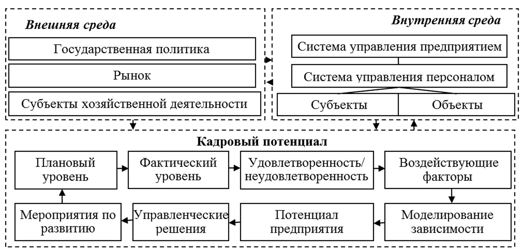 На развитие кадрового потенциала большое влияние оказывает внешняя и внутренняя среда. Постоянные изменения вводят новые правила для функционирования любой организации, которые необходимо внедрять и совершенствовать, учитывая специфику и направленность отраслевой деятельности.