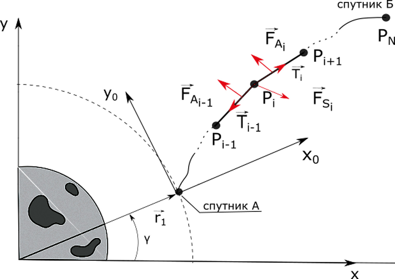 Обоснование. Космическая тросовая система — это механическая система, состоящая из двух спутников, соединенных между собой протяженным тросом. Особый интерес представляют электродинамические тросовые системы, в которых спутники оснащены специальными устройствами, позволяющими пускать по тросу ток [1, 3]. При пропускании тока по тросу со стороны магнитного поля Земли на него будет действовать сила Ампера, которую можно использовать для управления движением [2]. Главное преимущество таких тросовых систем заключается в том, что с их помощью можно осуществлять различные орбитальные маневры с минимальными затратами реактивного топлива.