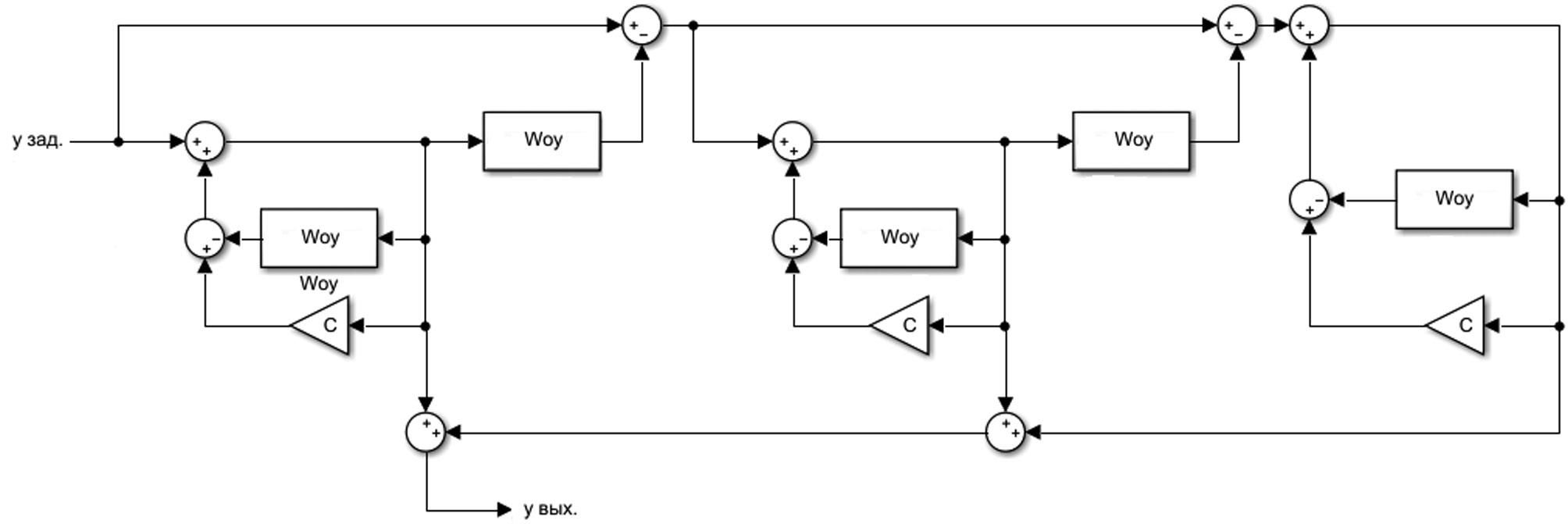 При реализации системы управления по возмущению возникает проблема построения компенсирующего устройства, так как любой реальный объект обладает инерционностью, а идеальный форсирующий элемент, осуществляющий компенсацию инерционных свойств объекта, нереализуем. Для реализации компенсирующего устройства применяется метод периодических структур (рис. 2).