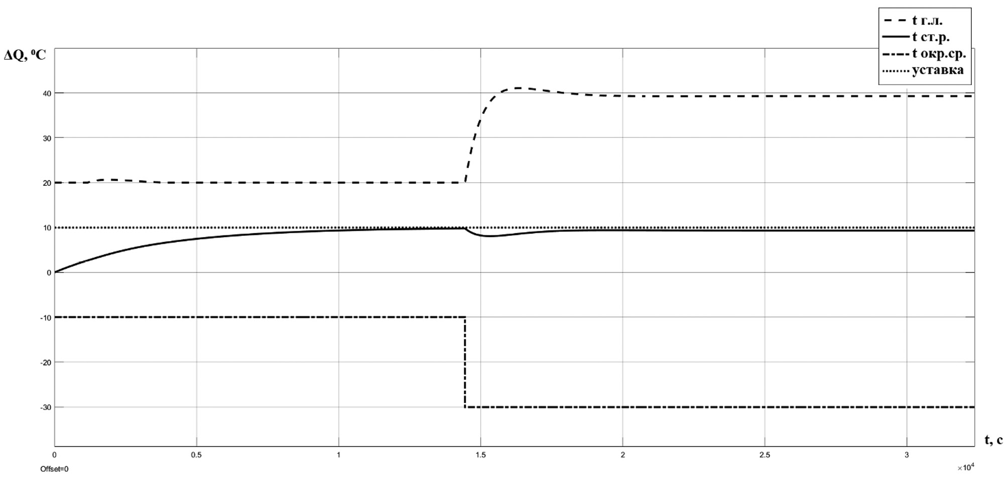 Из рис. 3 видно, что система мгновенно реагирует на изменение температуры окружающей среды, поддерживая температуру поверхности утеплителя на заданном уровне.