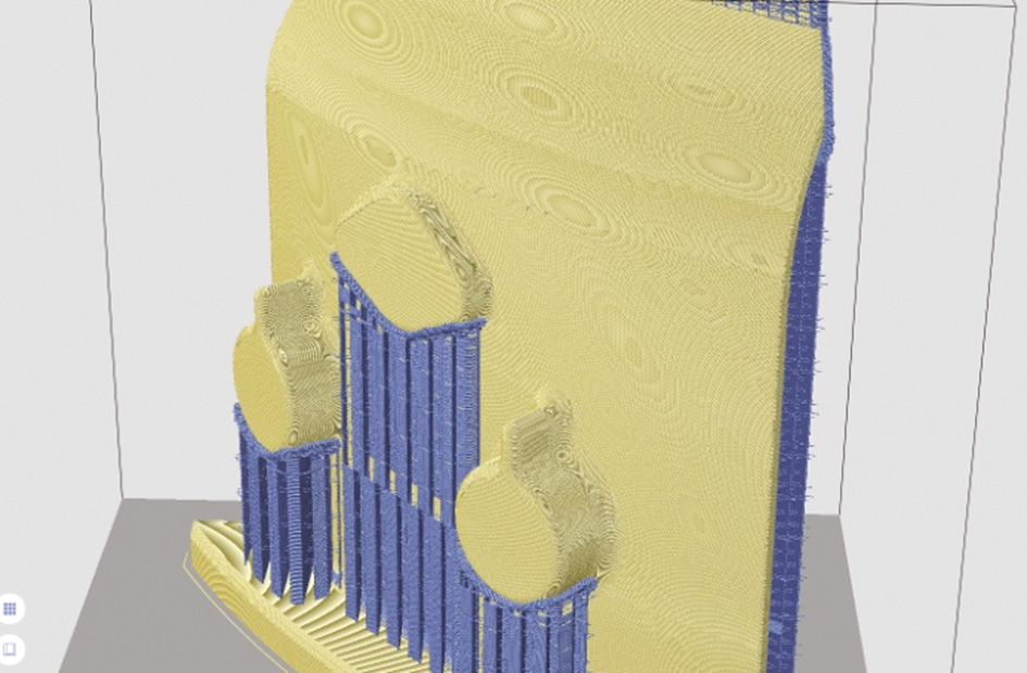 Рис. 2. Внешний вид комбинированной воско-полимерной модели с поддерживающими структурами в программной среде PolygonX (фрагмент)