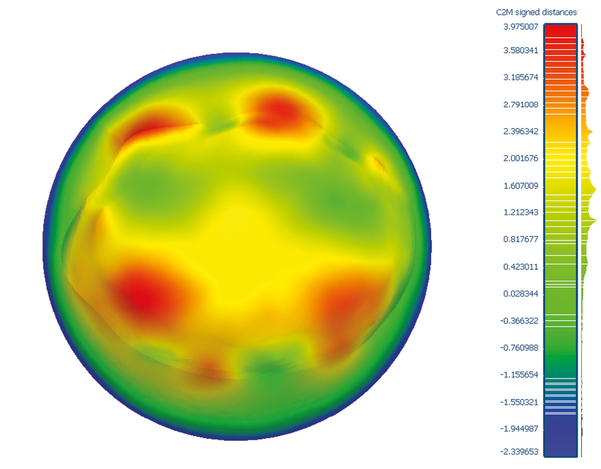 Последующее сравнение влияния параметров процесса инкрементального формообразования на точность получаемого изделия выполняли в программе CloudCompare. Оценка точности формообразования имплантата осуществляли путем расчета расстояний между точками эталонной 3D-модели и модели, полученной при моделировании процесса.