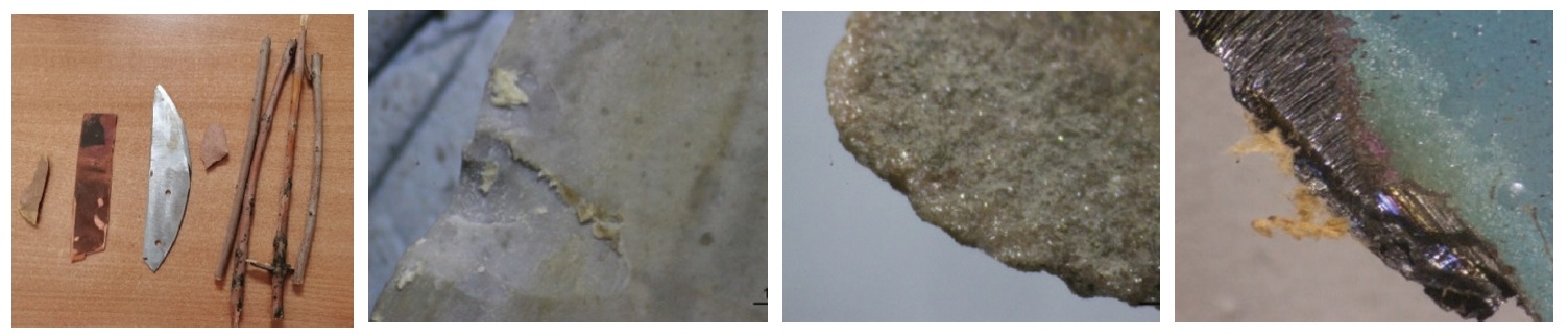 Цель — определить особенности следов сработанности, остающихся на каменных, медных и железных орудиях после работы с разными материалами.