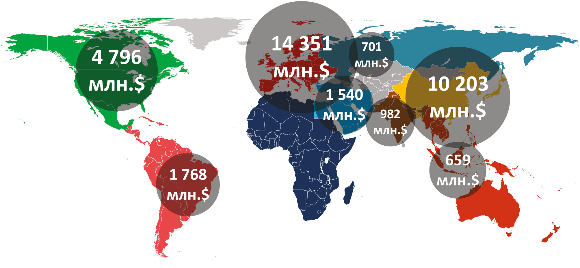 Актуальность темы заключается в том, что ключевым ориентиром для выполнения глобальных целей по сокращению выбросов диоксида углерода является приверженность в мировой промышленности низкоуглеродным технологиям производства и потребления энергии [2]. В грядущем энергетическом переходе предполагается увеличение доли использования водорода в качестве топлива и энергоносителя. В перспективе до 2030 года прогнозируется рост европейского, азиатского и американского рынка водорода, что подтверждается заявленным финансированием в соответствующих национальных стратегиях (рис. 1). По объему заявленных инвестиций в водородные проекты Россия пока отстает от конкурентов.