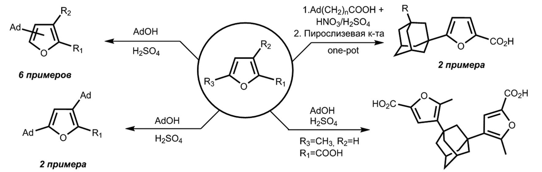 Рис. 1. Адамантилирование фурановых субстратов