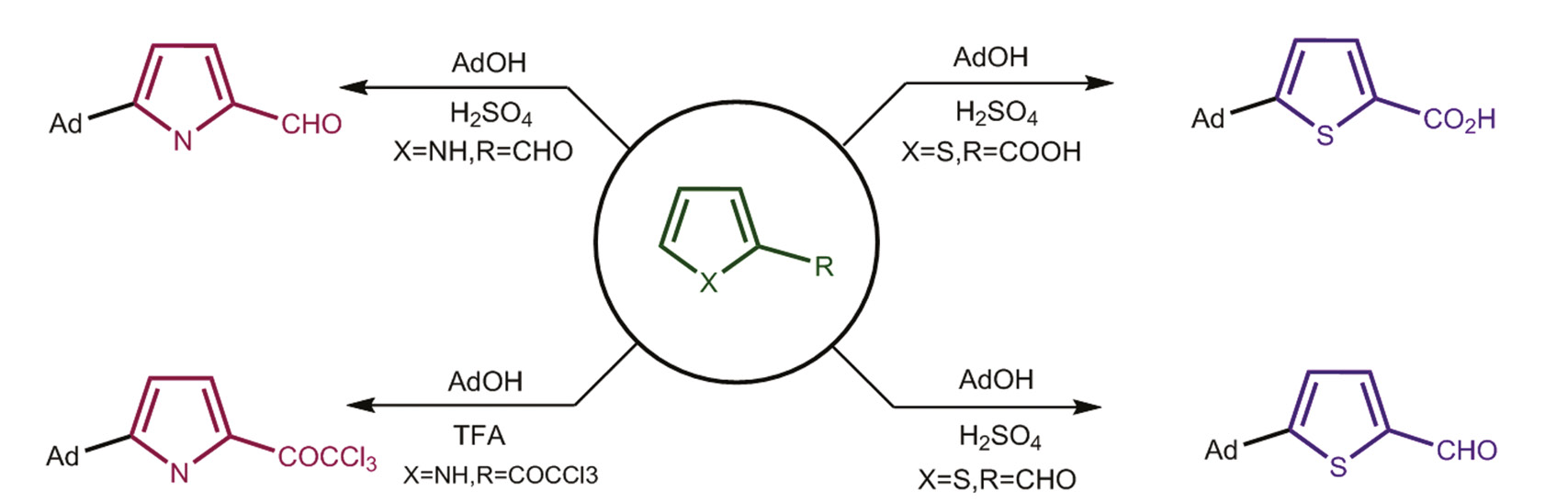 Рис. 2. Адамантилирование пиррольных и тиофеновых субстратов
