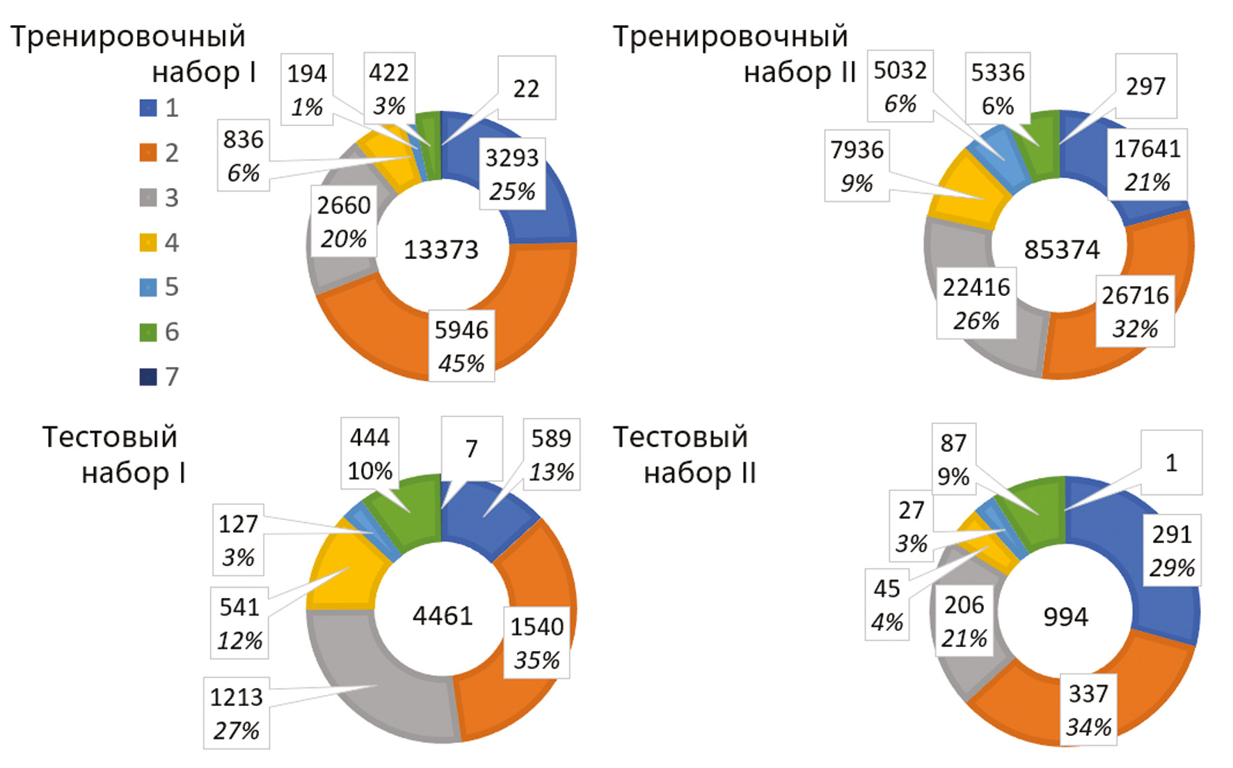 Рис. 1. Статистические сведения о составленных для обучения и тестирования наборах данных