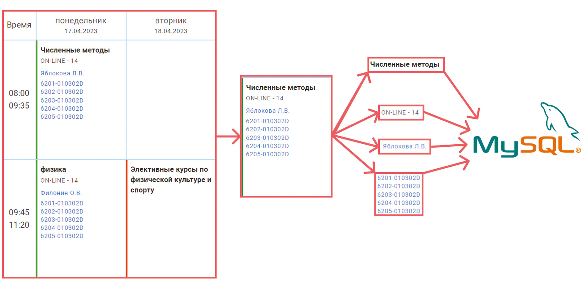 Рис. 1. Визуальная схема алгоритма парсинга страницы расписания