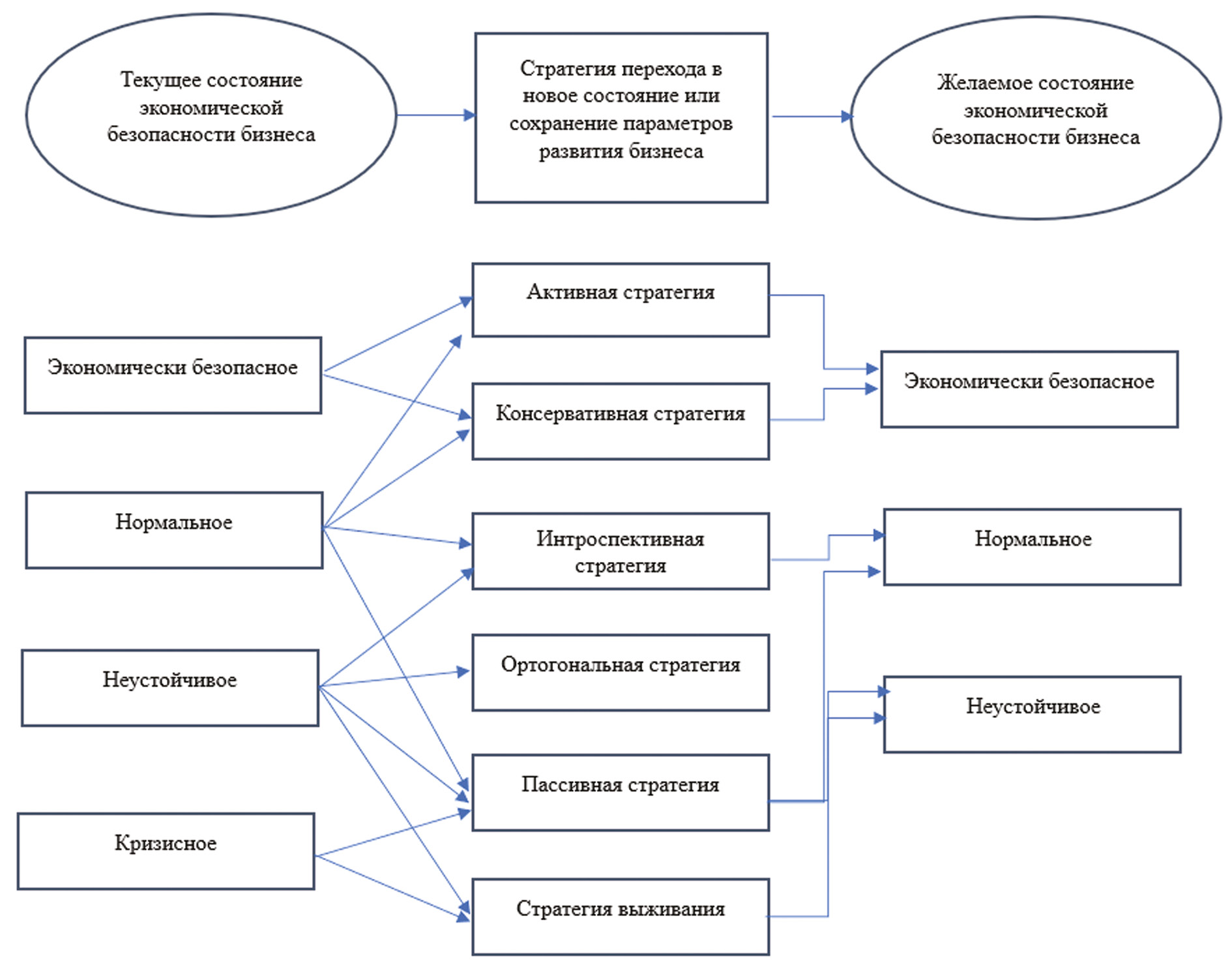 Рис. 1. Схема к вопросу выбора стратегии развития предприятия с целью повышения уровня его экономической безопасности [2]
