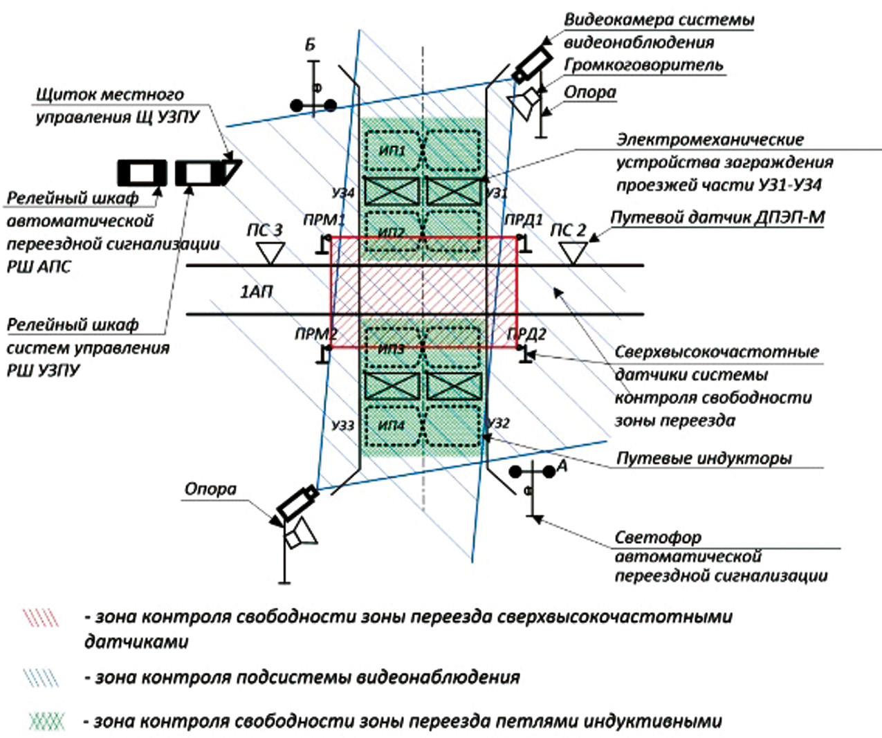 Рис. 2. Схема подсистем выявления препятствий для движения поездов на переезде