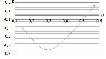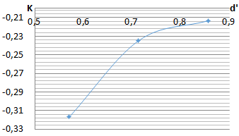 Рис. 3. Зависимость коэффициента интерференции от отношения высоты пилона к диаметру фюзеляжа