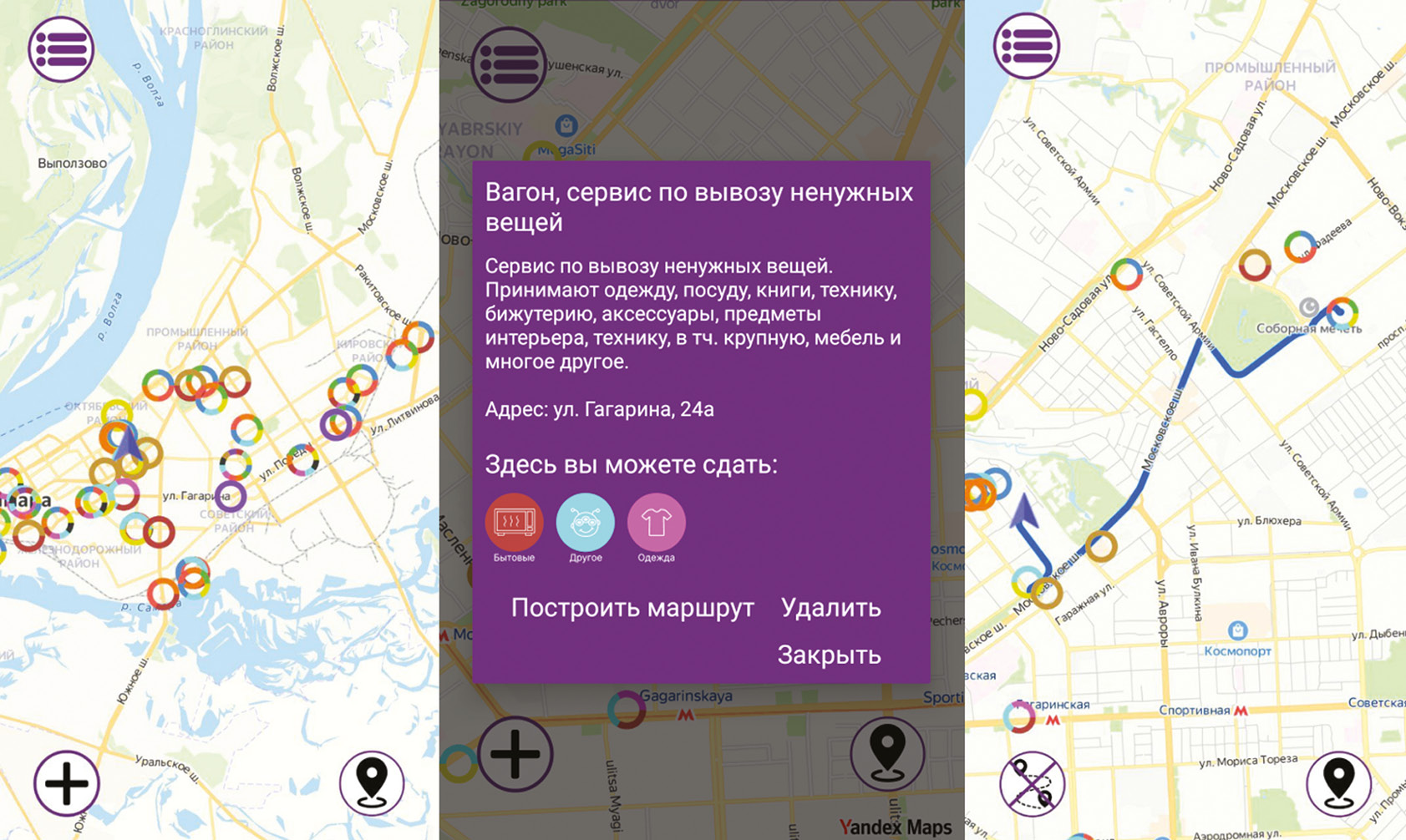 Результаты. Собрав всю информацию и реализовав все задумки, мы сделали приложение «TRashmAP» (рис. 1), которое предоставляет следующие возможности: