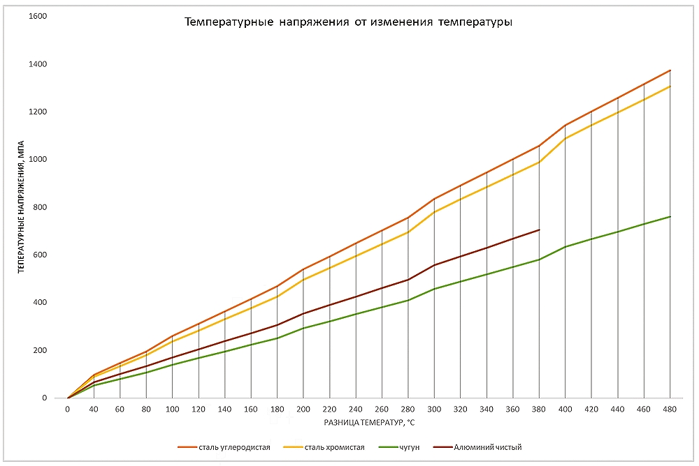 где α — коэффициент теплового расширения, l0 — изначальная длина тела, ΔТ — разница начальной и конечной температур.