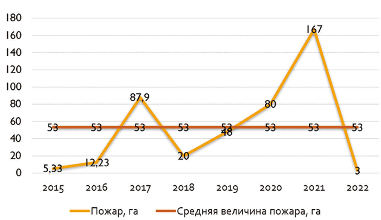 Обоснование. На сегодняшний день экологическая проблема по защите лесов считается очень важным вопросом, над решением которого трудится огромное число экспертов. Нынешняя статистика по количеству лесных пожаров в городе Тольятти. На рисунке 1 представлена картина в виде динамики лесных пожаров Тольятти за 2015–2022 годы.
