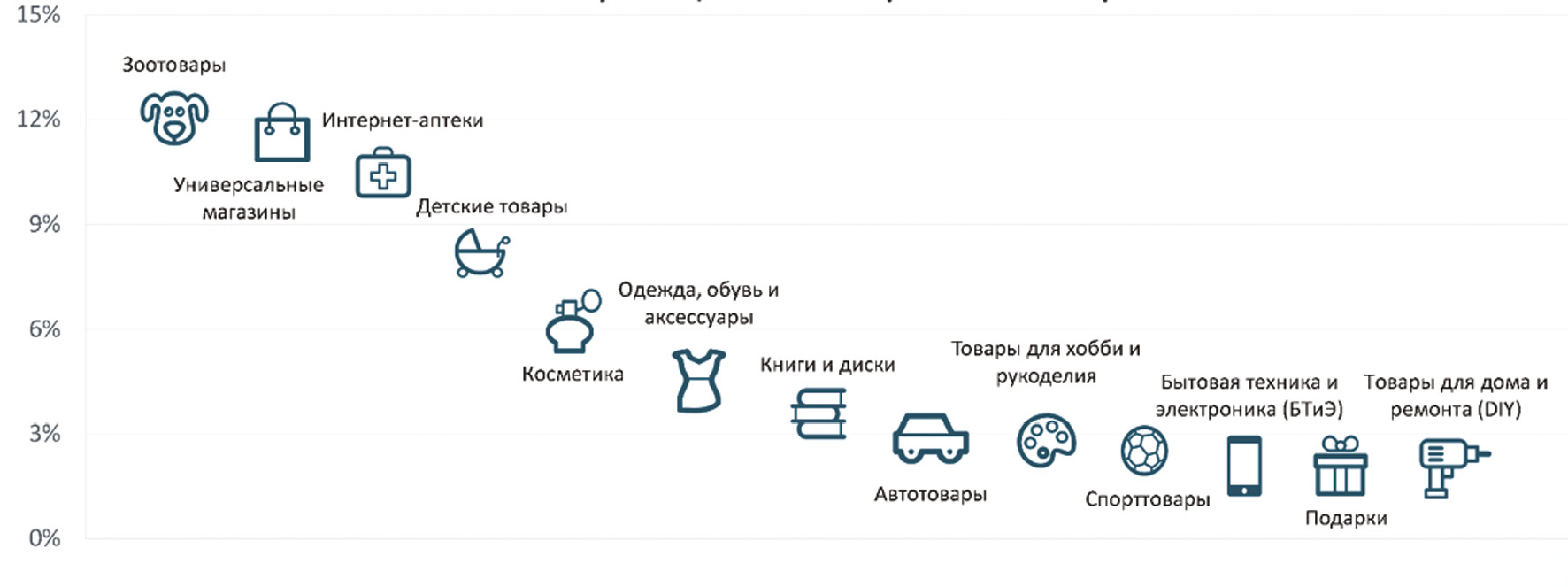Целевая аудитория: товарный бизнес — офлайн- и онлайн-предприниматели в РФ, занимающиеся оптовой и розничной продажей различной продукции. Основные сферы деятельности ЦА: автозапчасти и автотовары; одежда, обувь, аксессуары; парфюмерия, косметика; товары для дома и ремонта; электроника и техника (рис. 1) [1].