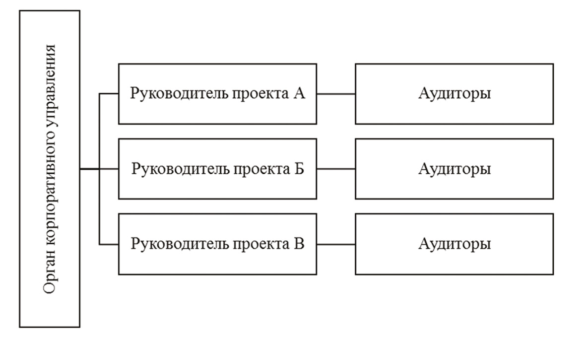 По нашему мнению, наиболее приоритетным направлением формирования организационной структуры менеджмента является проектная. Это обусловлено тем, что деятельность аудиторов в большинстве случаев нацелена на реализацию задач крупных клиентов, подо что можно сформировать отдельный проект.