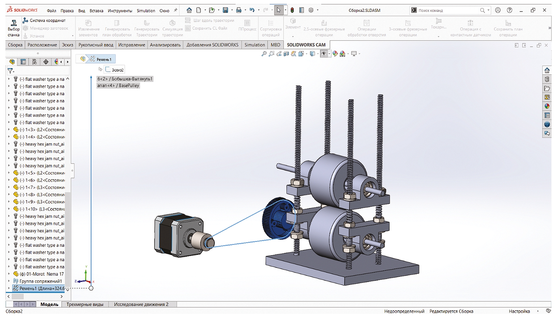 Результаты. Посредством САПР SolidWorks [4] спроектирована 3D модель сборки тянущего устройства лабораторной экструзионной линии.