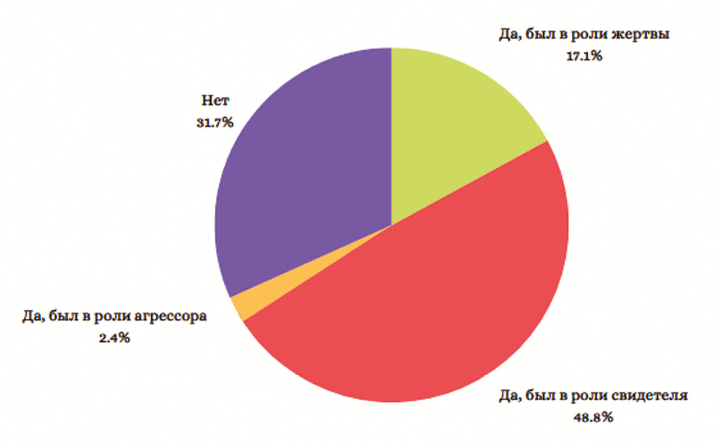Среди студентов, относящихся к группе № 2, более 68 % сталкивались с травлей. Из них 17 % были в роли жертвы.