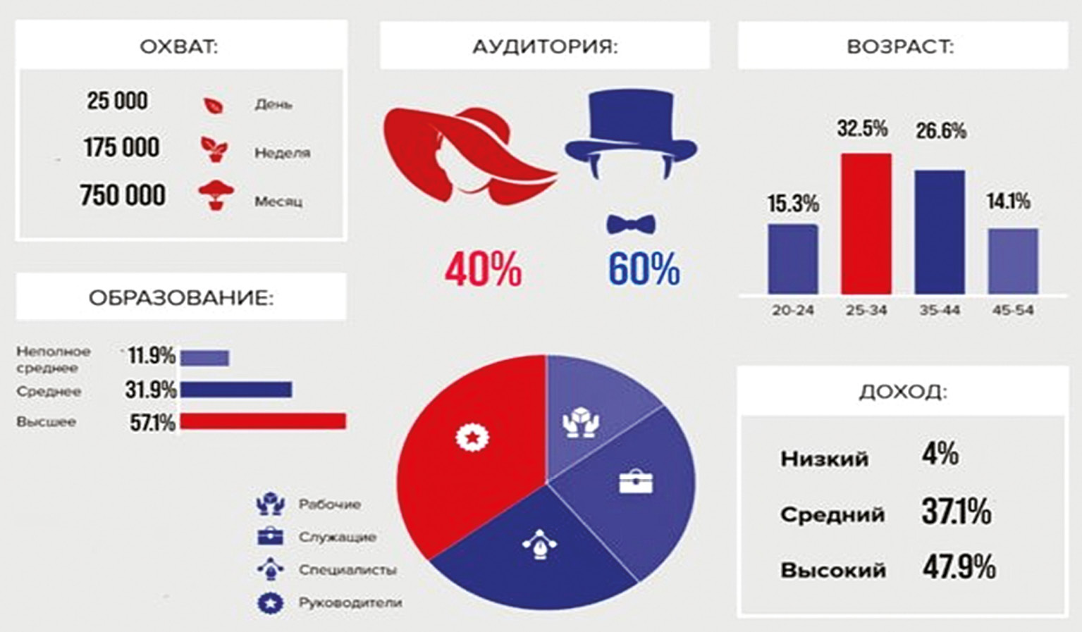 Результаты. Данные, полученные при анализе аккаунтов политических лидеров, представлены на рисунках 1 и 2. Отмечен половозрастной состав, профессиональный состав аудитории, образование и др. На сегодняшний день политический лидер, губернатор Самарской области владеет одним из самых развитых и наполненных аккаунтов среди коллег. Положительными сторонами его аккаунта являются: постоянная связь с общественностью, контроль ситуации на своей странице в социальной сети, регулярные ответы на вопросы подписчиков; связка активности губернатора с решением задач, поставленных Президентом России; освещение в публикациях в социальных сетях вопросов, с которыми жители Самарской области обращались на прямой линии к Президенту РФ; значительная часть публикаций сделана в ходе личного общения губернатора с гражданами во время поездок по региону; публикация интересного контента о Самарской области. Губернатор Ямало-Ненецкого автономного округа, Д. Артюхов, также проявляет активную жизненную позицию в своем регионе. Выделим положительные стороны ведения его аккаунта: широкое использование фактов и цифр в публикациях; связка активности губернатора с решением задач, поставленных Президентом России; регулярное использование формата прямых линий с жителями ЯНАО в социальных сетях; значительная часть публикаций сделана в ходе личного общения губернатора с гражданами во время объезда региона (проект «Честный маршрут»).