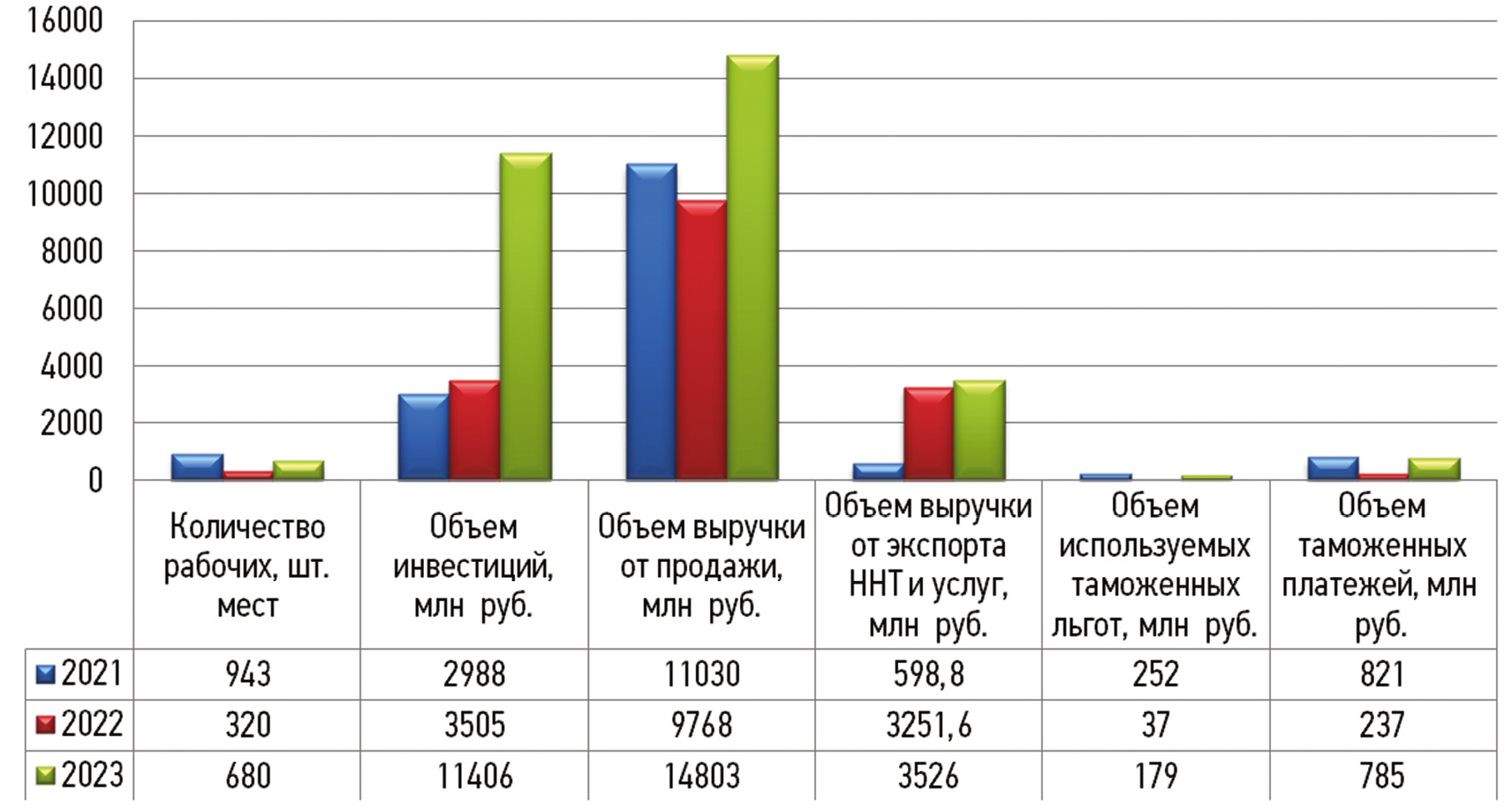 Рис. 1. Показатели функционирования ОЭЗ «Тольятти»