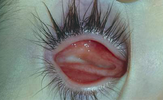 Рис. 1. Врождённый микрофтальм с зачатком глазного яблока (клиническая картина идентична врождённому анофтальму)