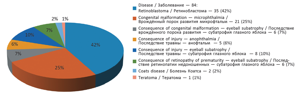 Fig. 2. The structure of the ophthalmological morbidity of children who are consulted and live in St. Petersburg (the percentage of microphthalmia in the nosological structure is 25%)