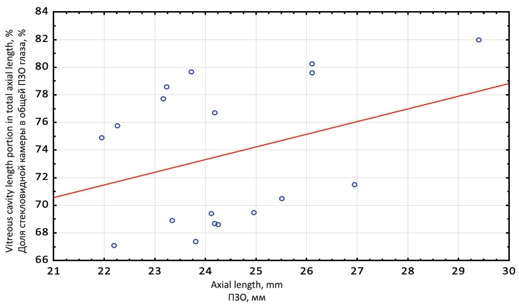 Рис. 3. Доля стекловидной камеры без силиконового масла в общей передне-задней оси глаза при биометрии Lenstar LS 900
