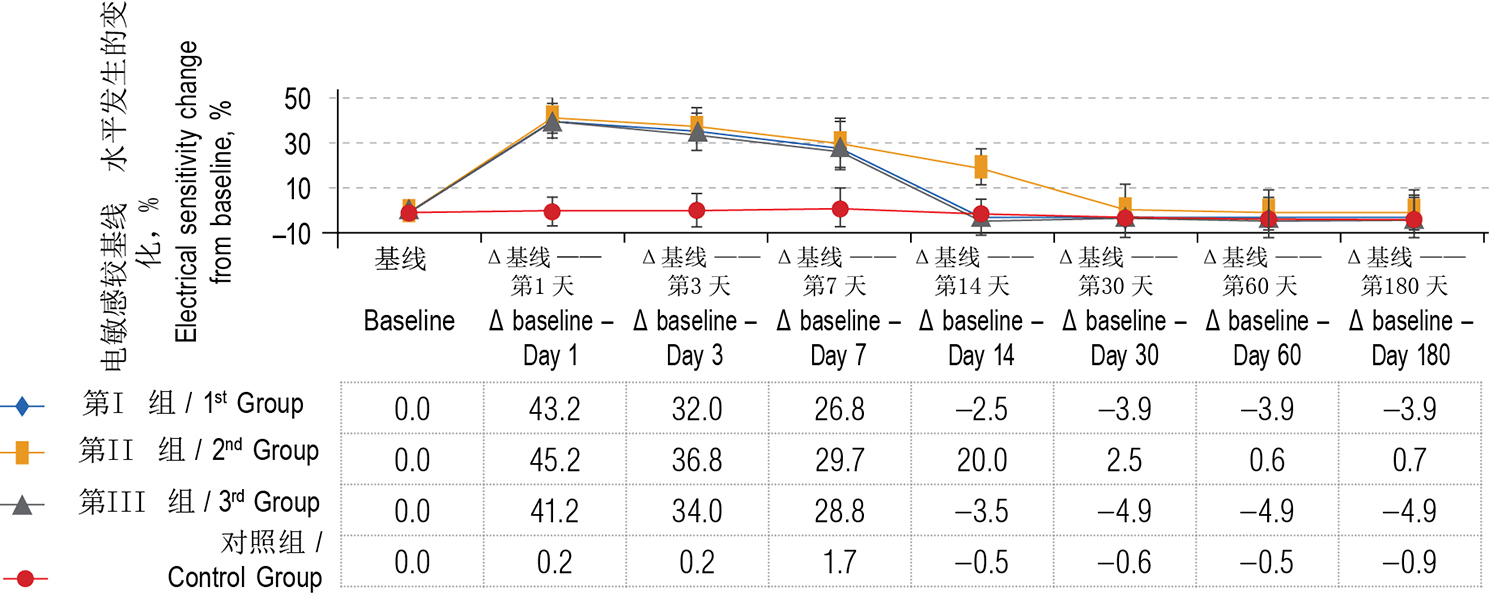 Fig. 5. Dynamics of the electrical sensitivity relative inhibition