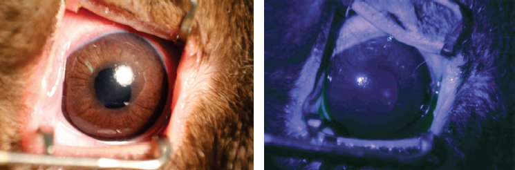 Рис. 2. Биомикроскопическая картина роговицы у животных 2-й группы на 30-е сутки: отсутствие помутнения, новообразованных сосудов, роговица полностью эпителизирована / Fig. 2. Biomicroscopic picture of the cornea in animals of the 2nd group, Day 30: no clouding, no new vessels, a complete epithelialization of the cornea