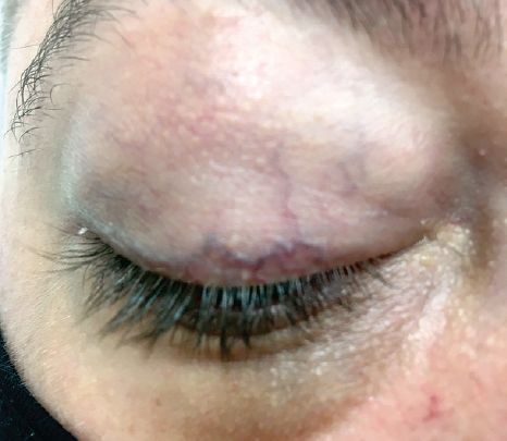 Fig. 1. Edema of the eyelids, dilated subcutaneous vein of the upper eyelid