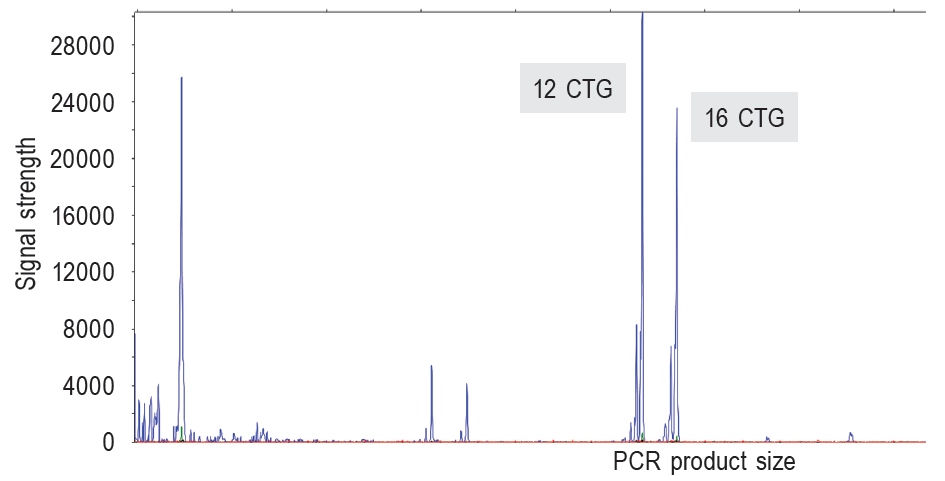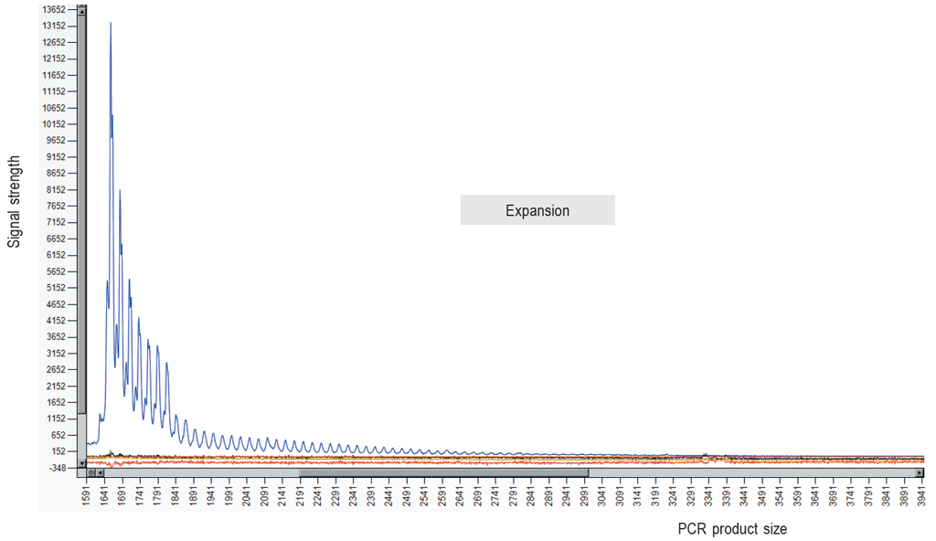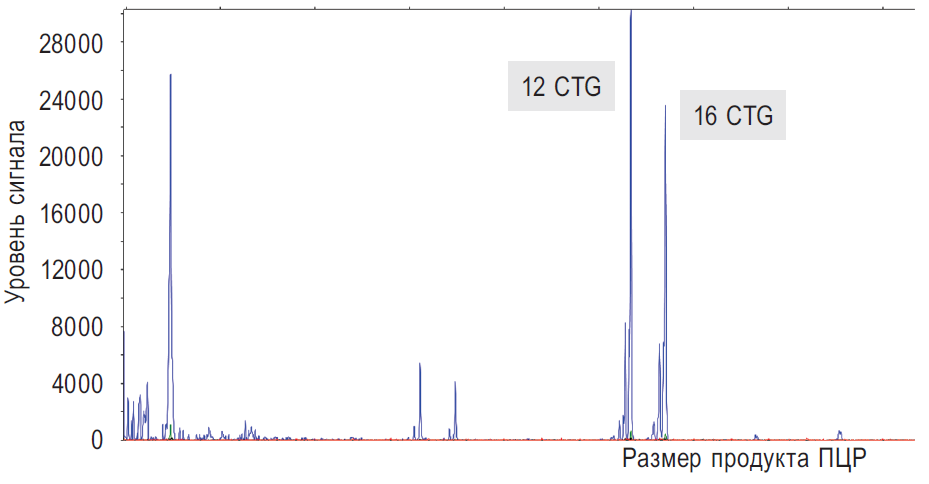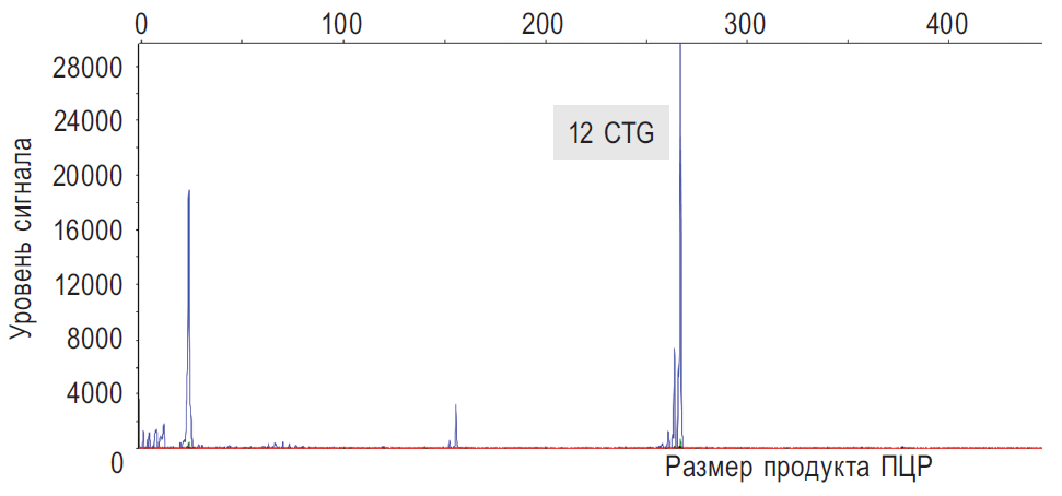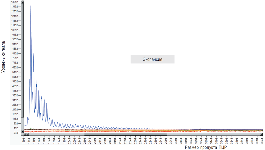 Рис. 2. Электрофореграмма скринингового исследования количества CTG-повторов в гене TCF4. Требуется исключение экспансии
