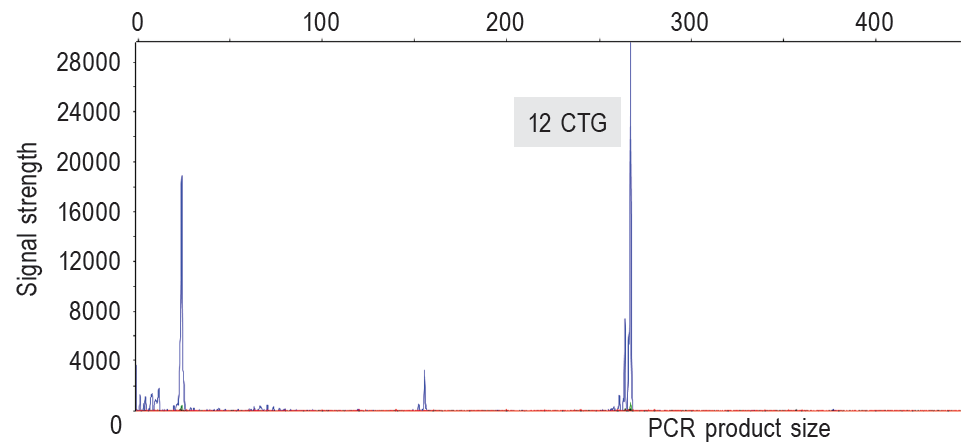 Fig. 2. Electrophoregram screening study of the number of CTG repeats in the TCF4 gene. Expansion required