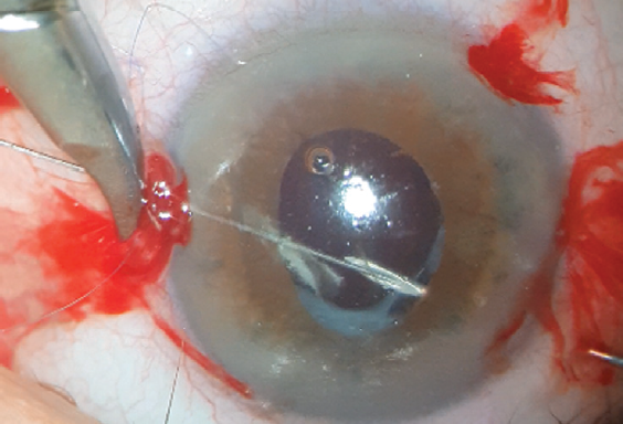 Рис. 3. Пример фиксации интраокулярной линзы ab externo