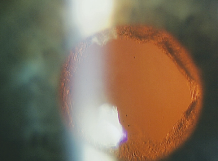 Рис. 2. Биомикроскопическая картина результата выполненной Nd:YAG-лазерной дисцизии вторичной катаракты
