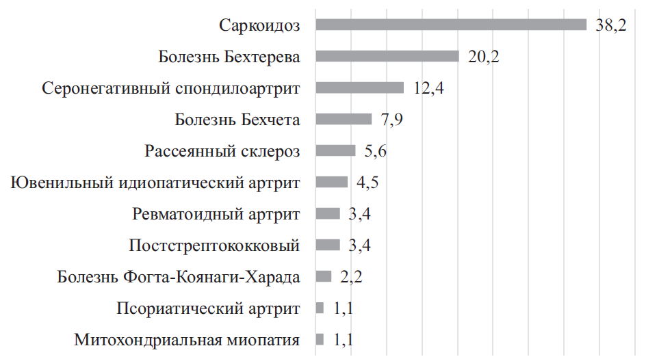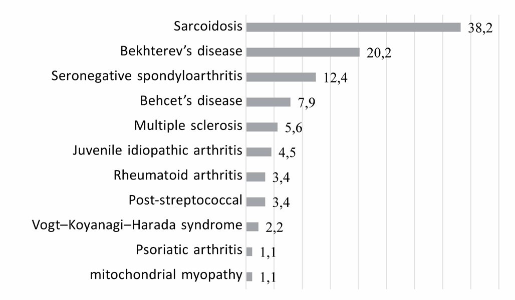 Рис. 4. Распределение пациентов с увеитом при системных и синдромных заболеваниях (n = 89)