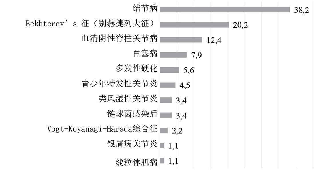 Fig. 4. Distribution of uveitis, associated with systemic syndromes and diseases (n = 89)
